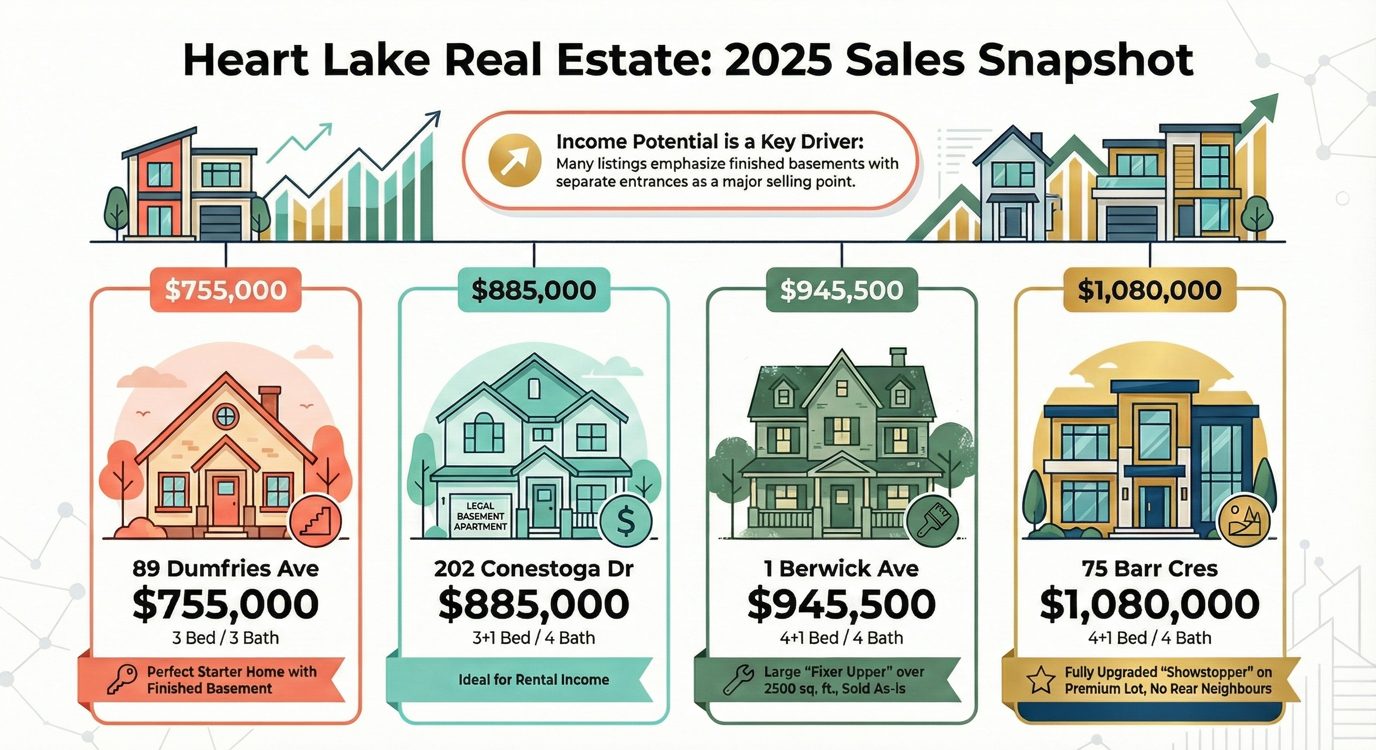 2. The "Basement Bonus":  A defining characteristic of the 2025 sales was the premium placed on income potential. Listings featuring legal basement apartments, in-law suites, or separate side entrances were frequently labeled as "investor dreams" or "showstoppers," directly influencing their ability to command prices nearing or exceeding $900,000.